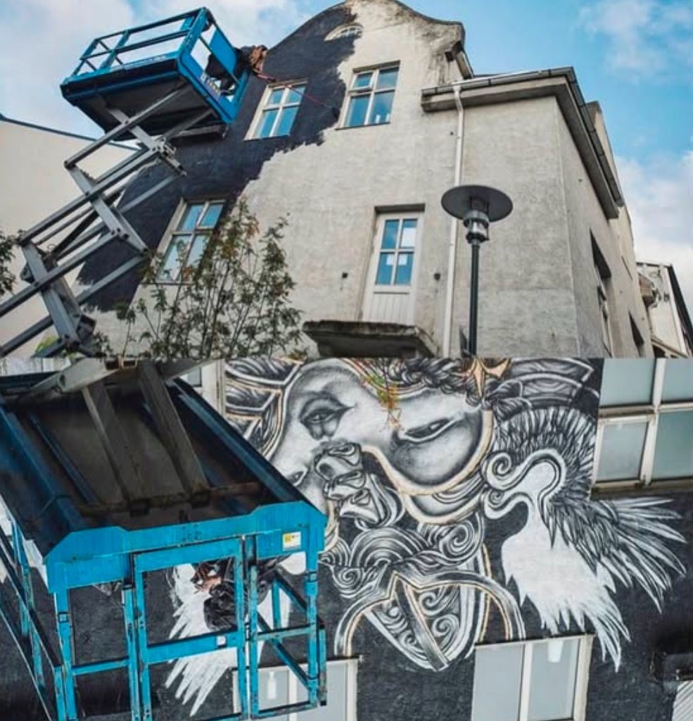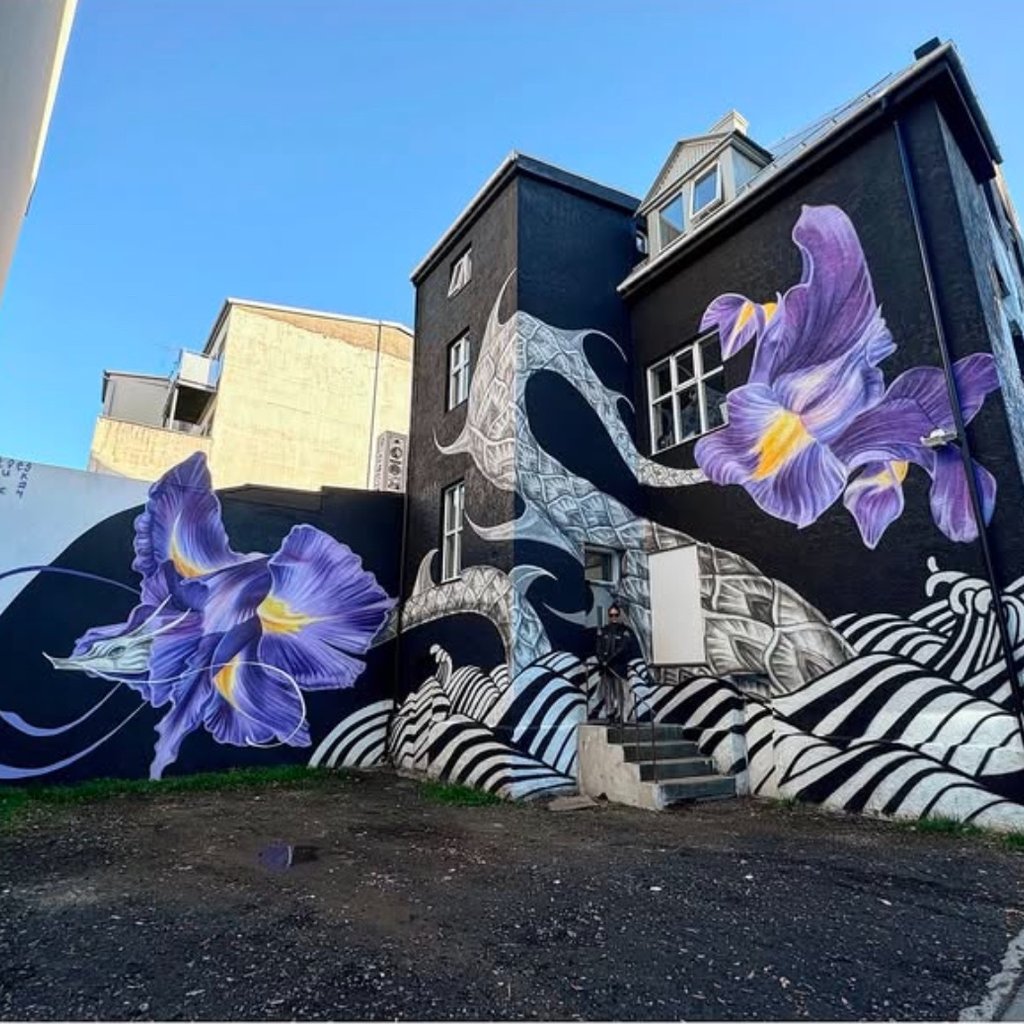 Caratoes was invited to Iceland to create a mural that captured the spirit of the extraordinary, reminiscent of the whimsical idea of plucking pineapples from the sky. Ten years later, they returned to not only refresh the original mural but also to expand their vision, transforming the entire building into a vibrant tapestry of art. This project celebrates the beauty of the impossible and the resilience of the human spirit, inviting viewers to immerse themselves in a world where creativity knows no bounds.