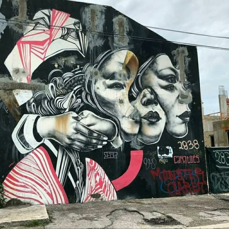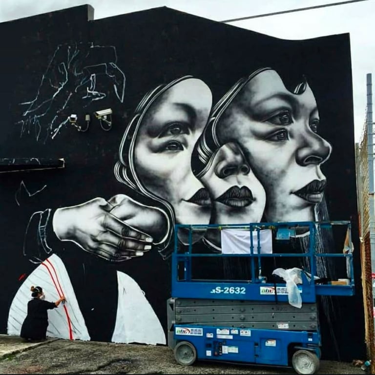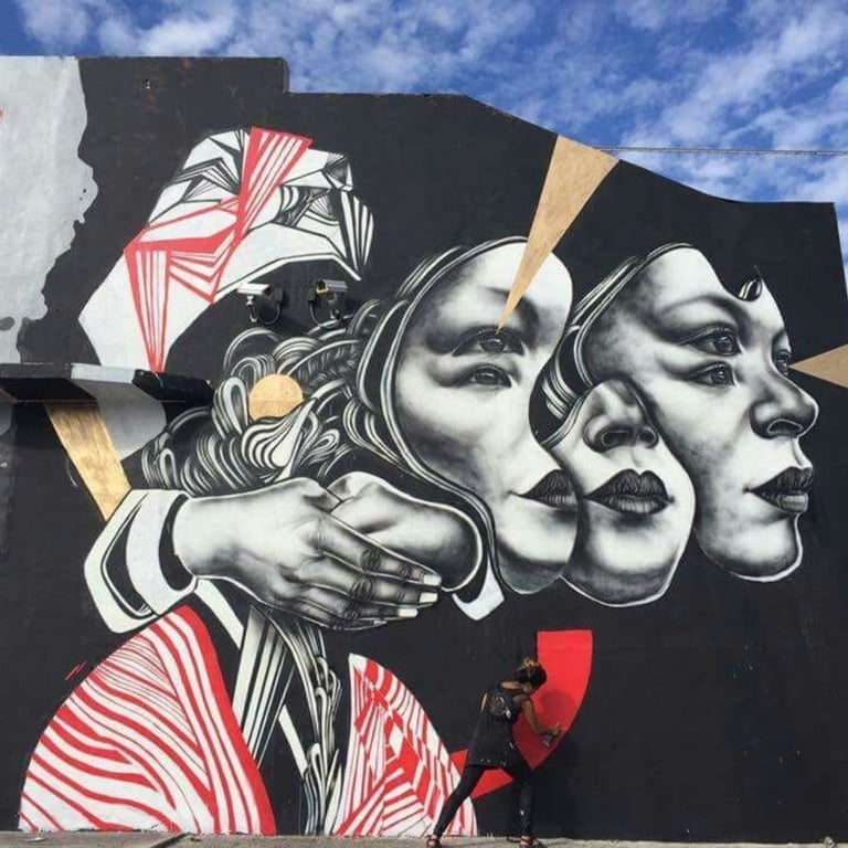 Miami, USA – Art Basel. This mural was created to represent the shared experience of immigrants, illustrating how many of us are looking and hoping beyond the fence for a brighter future.